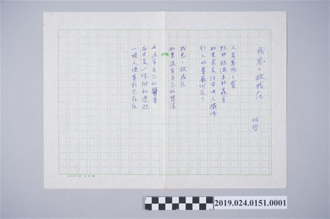 柯旗化詩作〈我思,故我在〉複寫稿