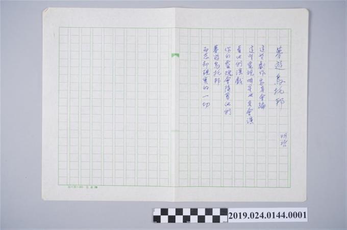 柯旗化詩作〈夢遊烏托邦〉複寫稿