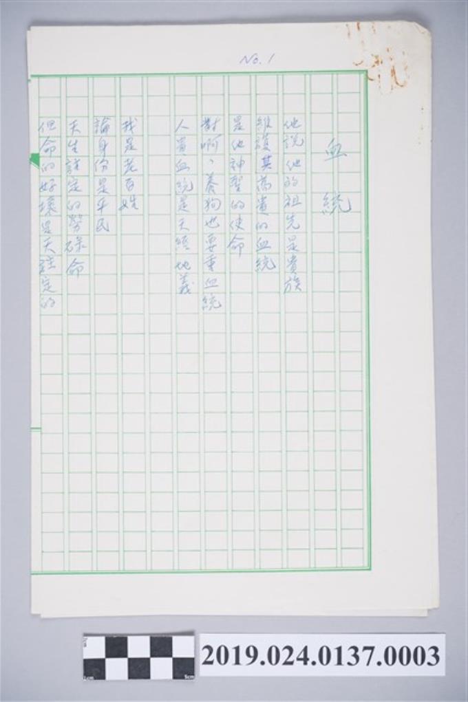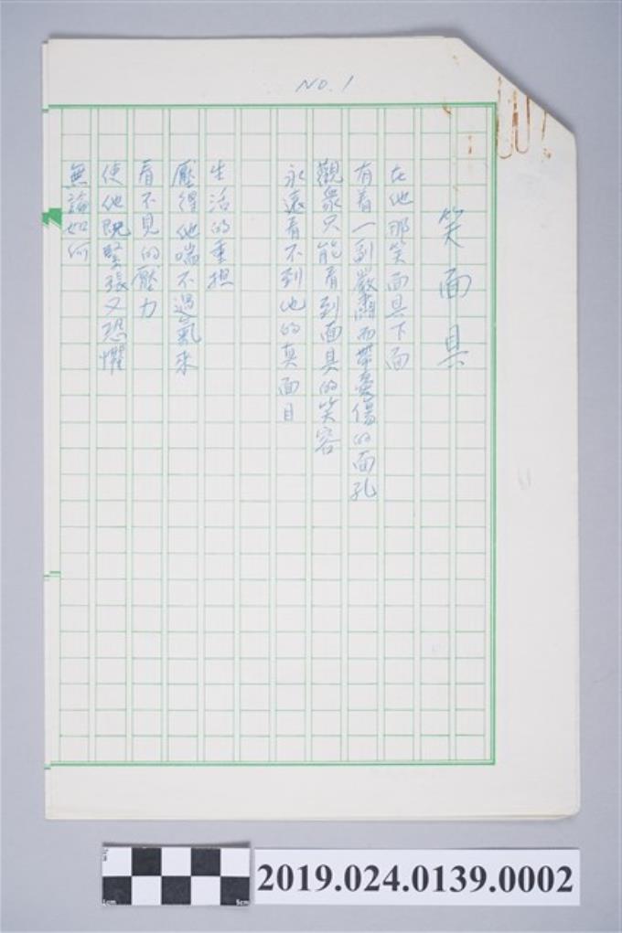 柯旗化詩作〈清道夫與挑糞者〉複寫稿