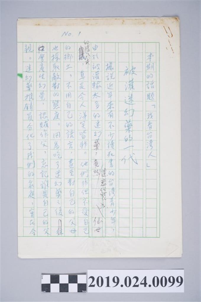 柯旗化文章〈被灌迷幻藥的一代〉複寫稿