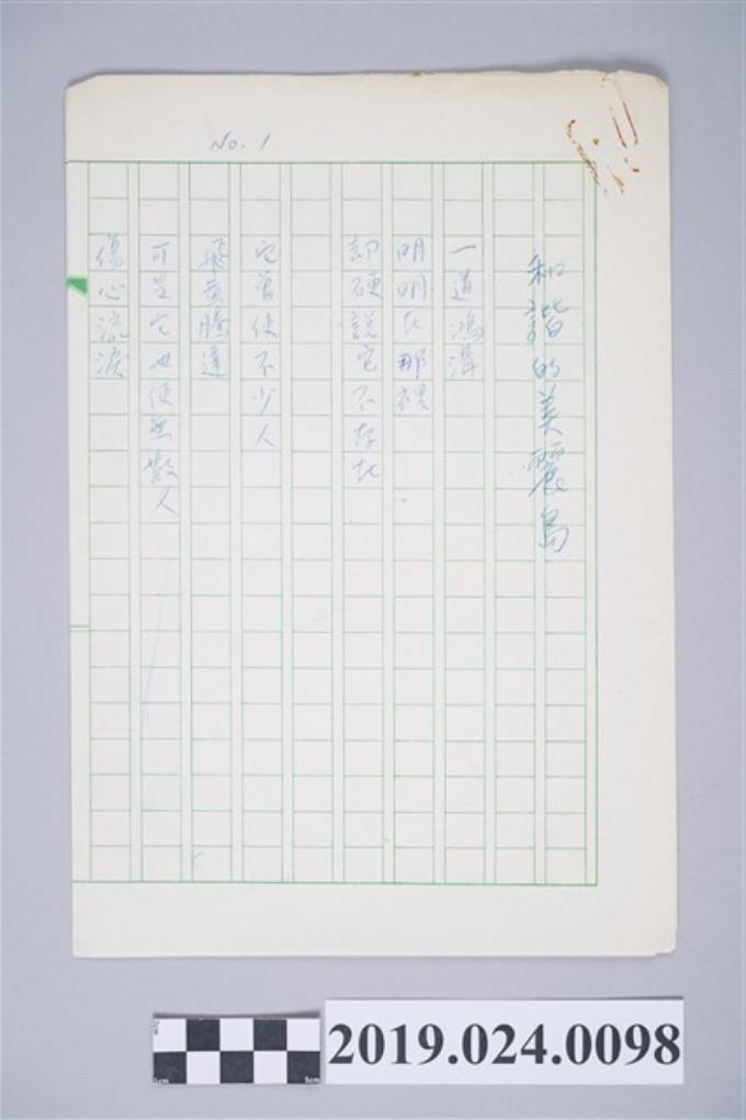 柯旗化詩作〈和諧的美麗島〉複寫稿、手稿