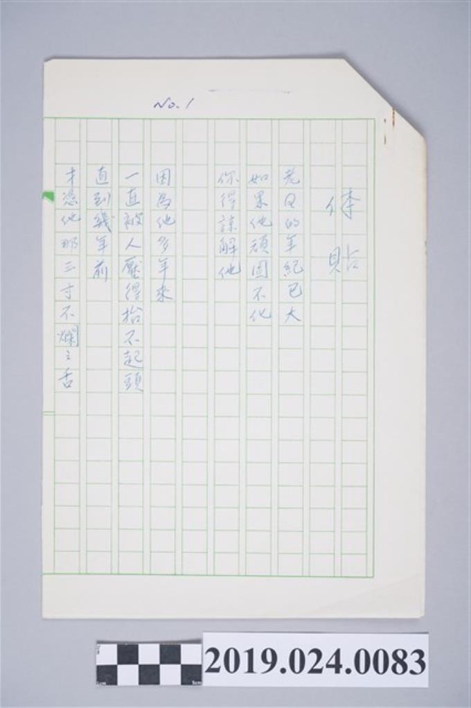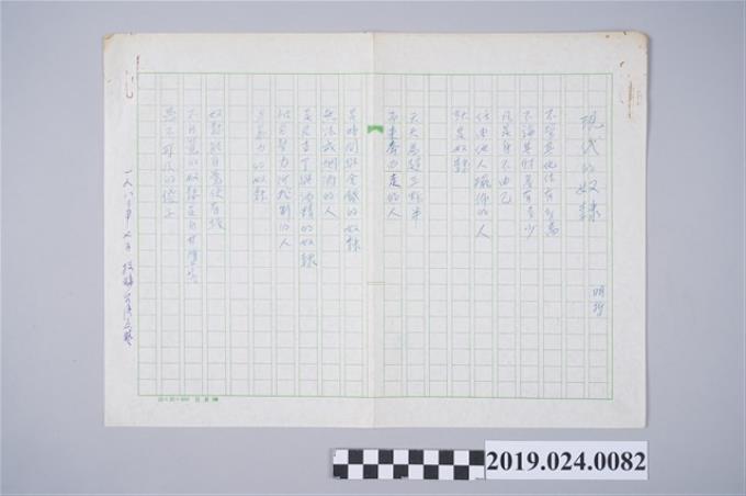 柯旗化詩作〈現代的奴隸〉複寫稿