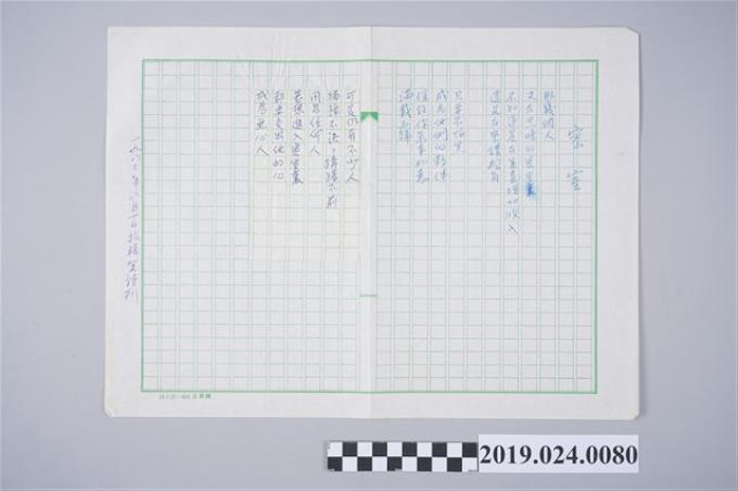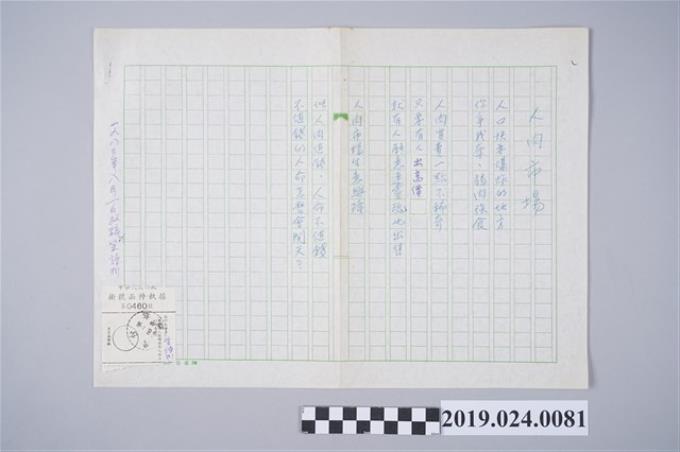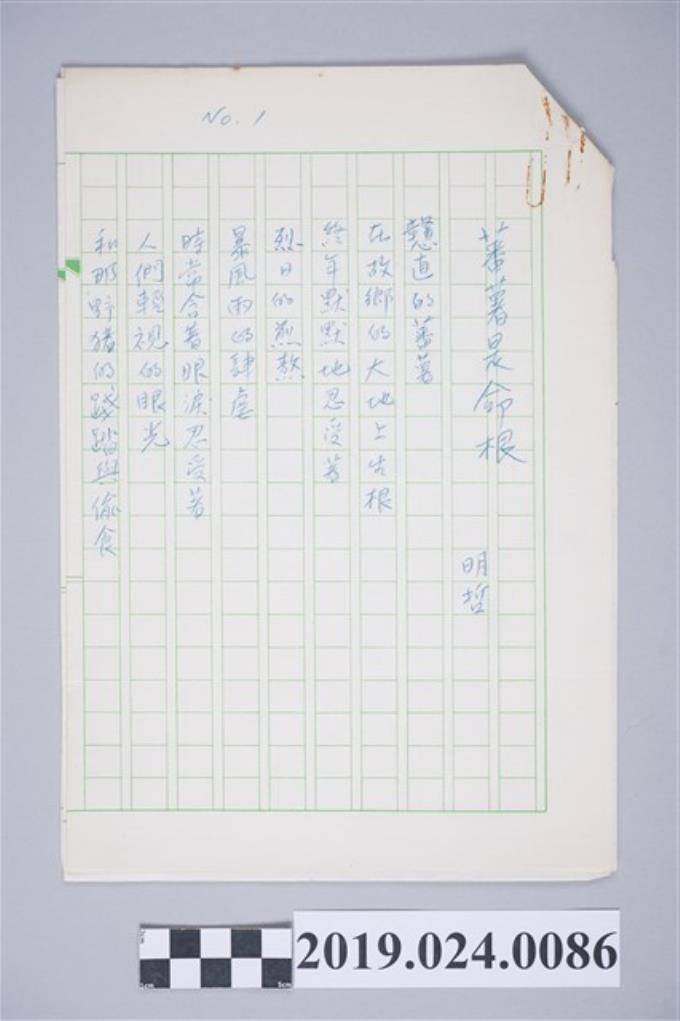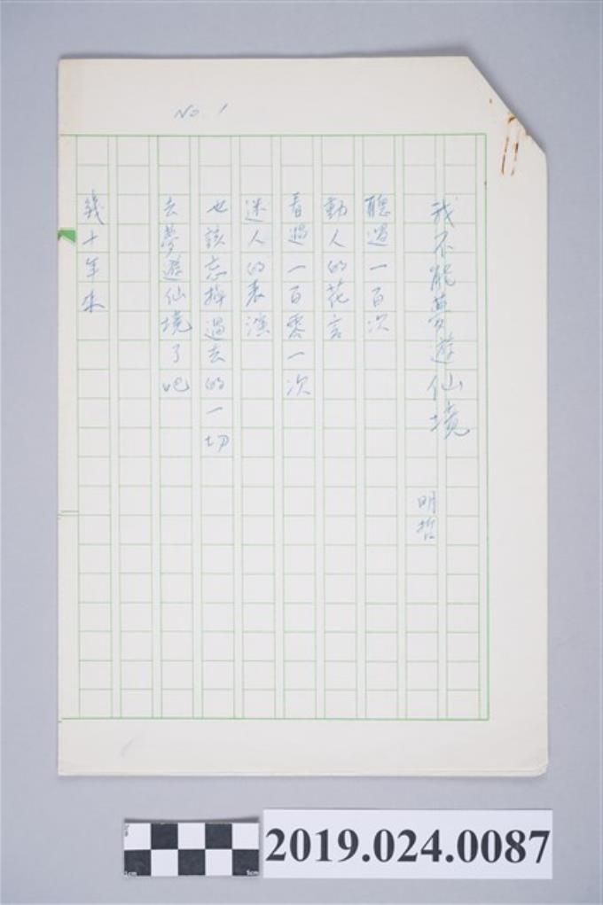 柯旗化詩作〈我不能夢遊仙境〉複寫稿