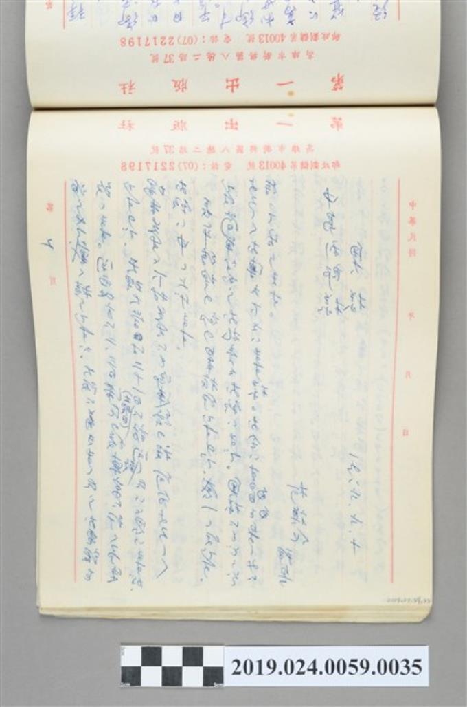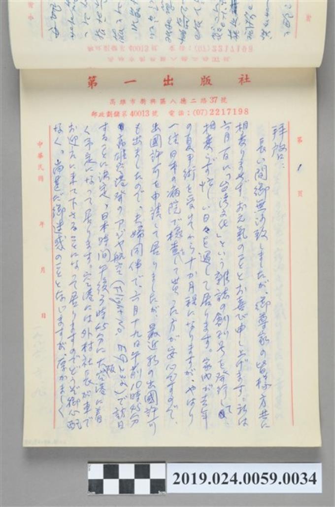 1986年6月9日柯旗化寄給高田鐵雄之信件