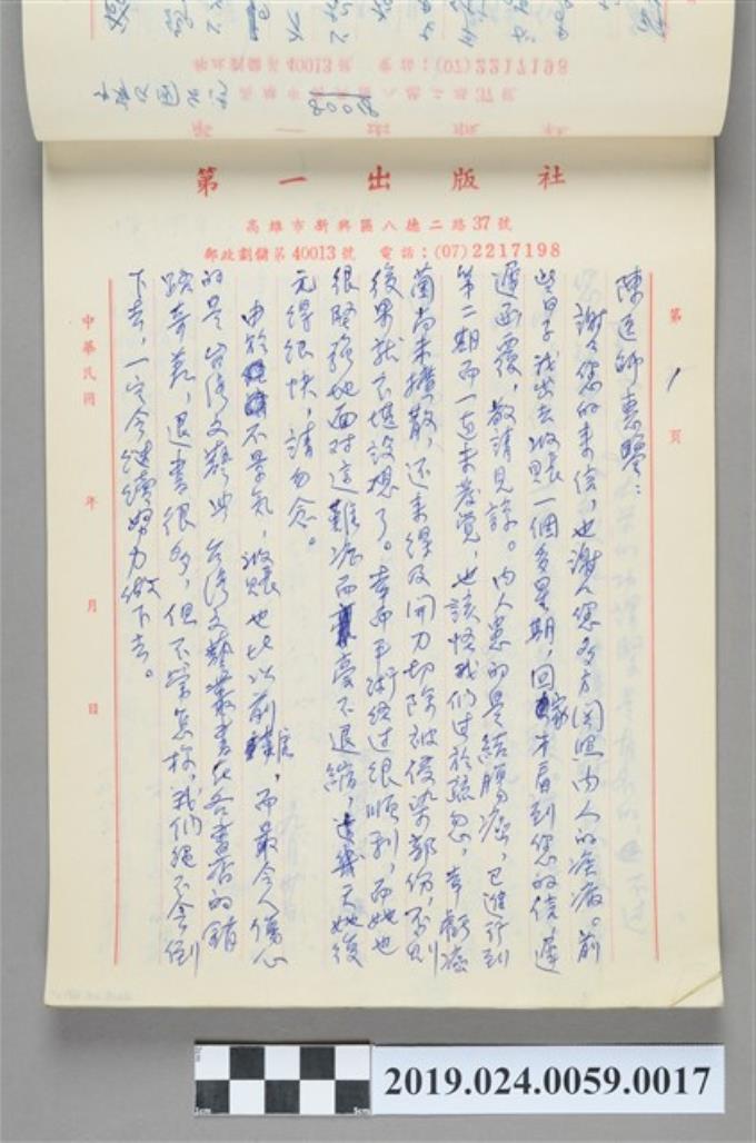 1986年1月27日柯旗化寄給「陳小姐」之信件