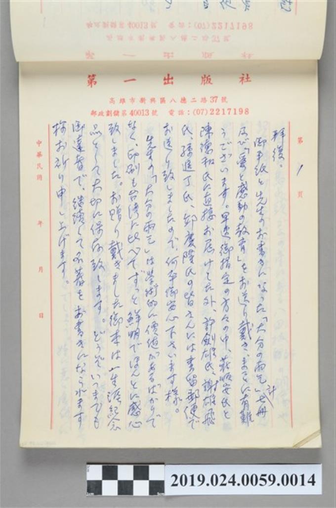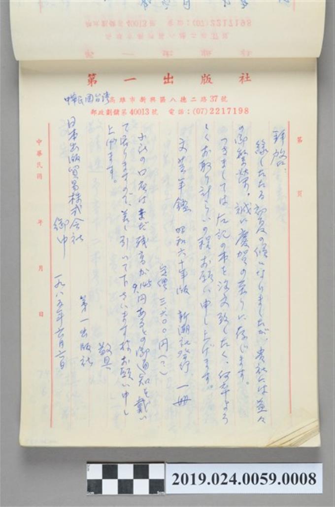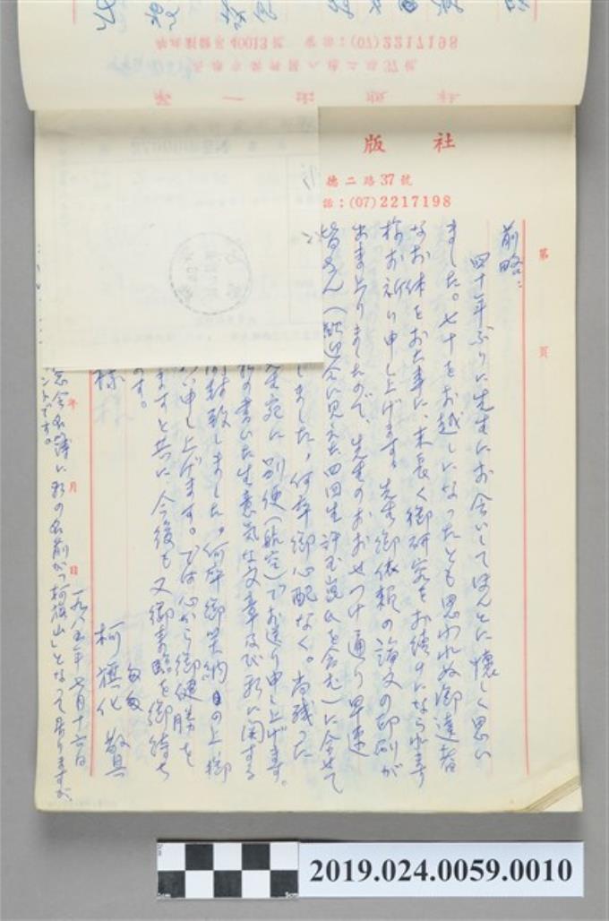 1985年6月6日柯旗化寄給日本貿易株式會社之信件