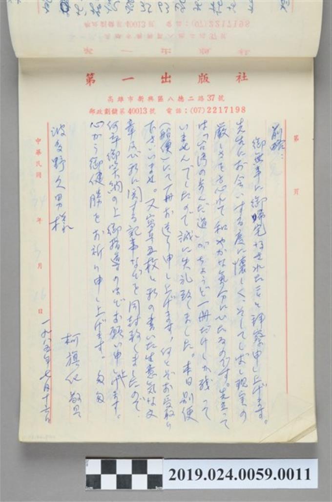 1985年7月16日柯旗化寄給「國治兄」之信件
