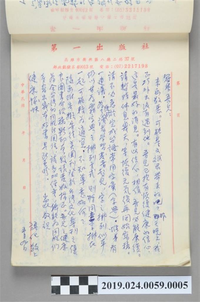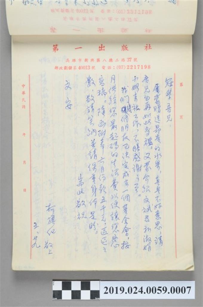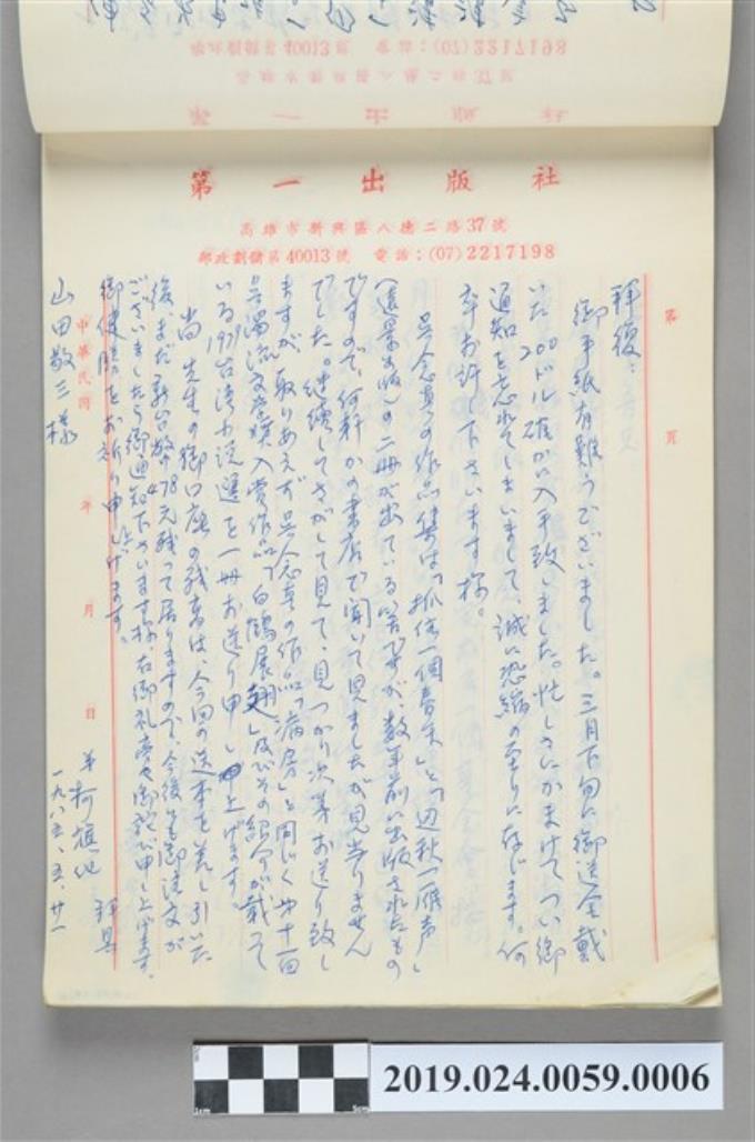 1985年5月9日柯旗化寄給下村作次郎之信件