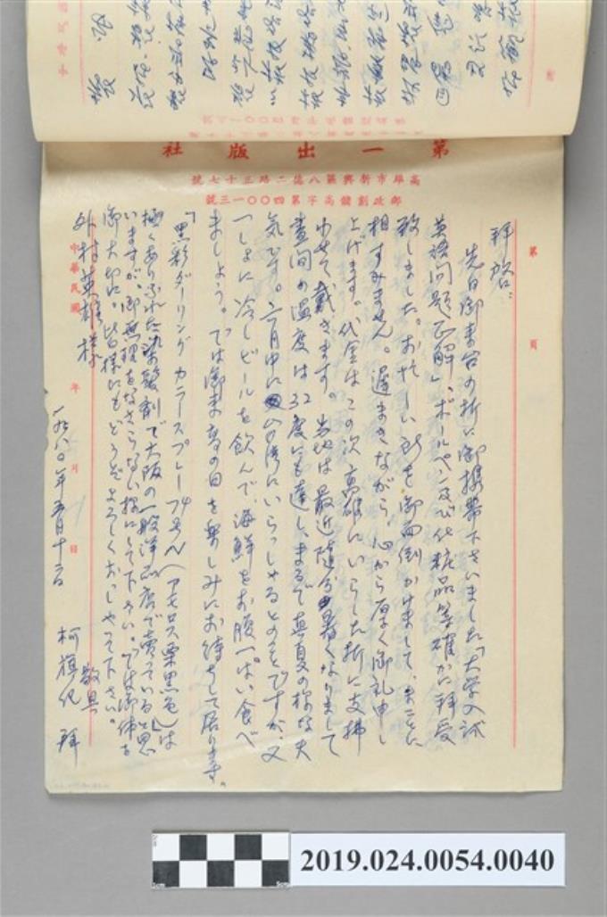 1980年8月24日柯旗化向日本出版貿易株式会社購書之信件
