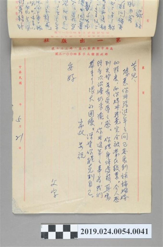 1981年1月30日柯旗化寄給冠傑兄之信件
