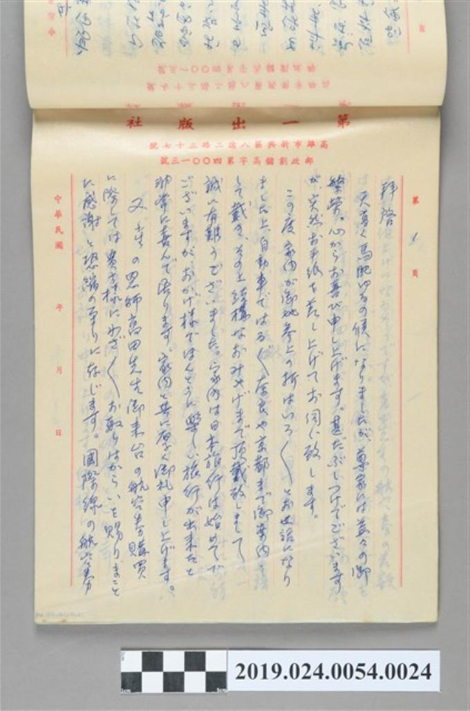 1979年10月24日柯旗化寄給高田鐵雄之信件