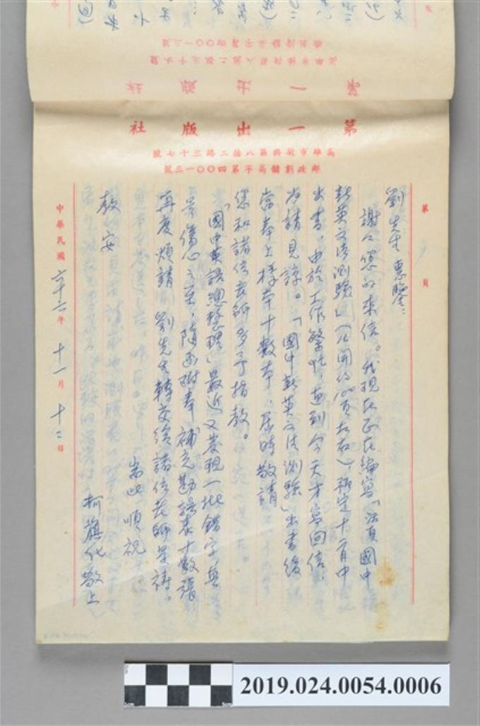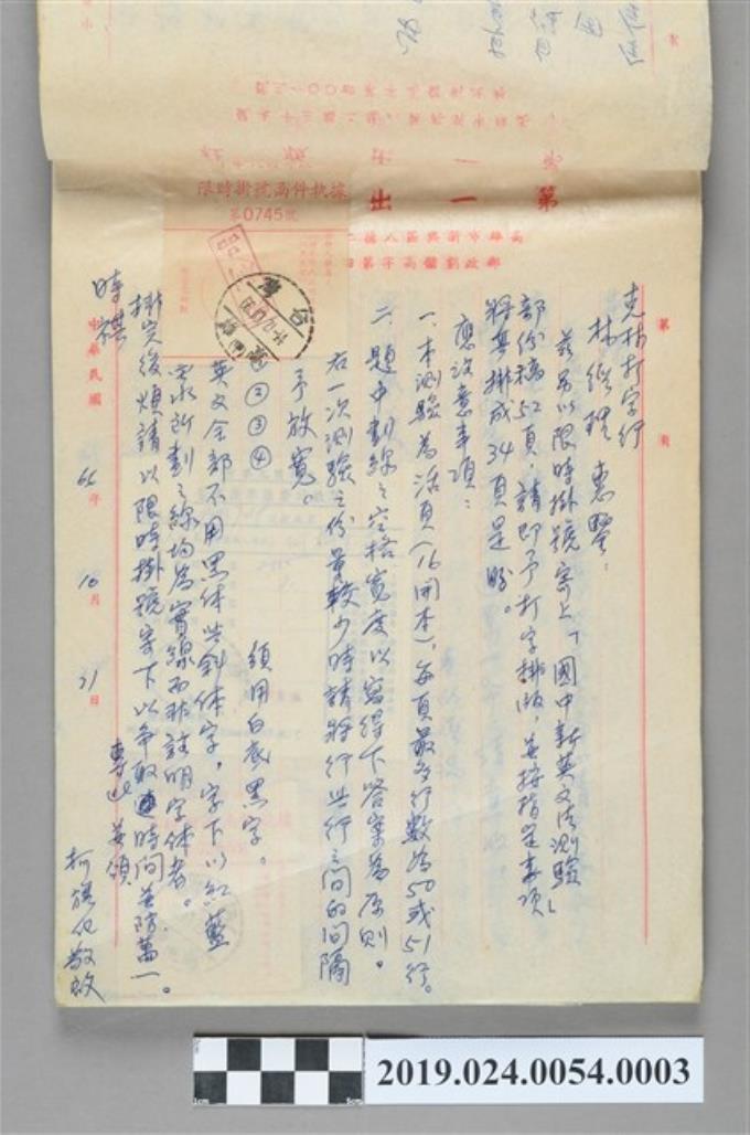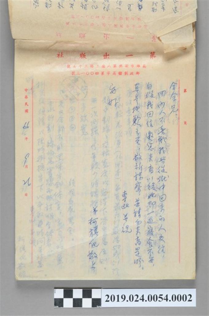 1977年10月22日柯旗化寄給二妹柯玉燕之信件