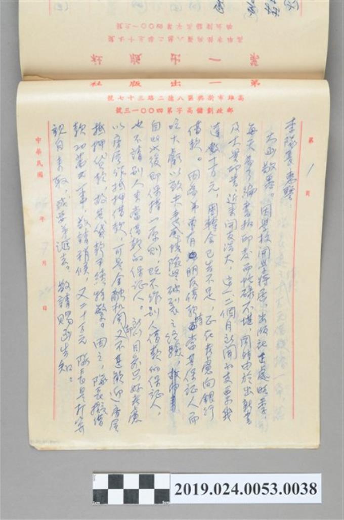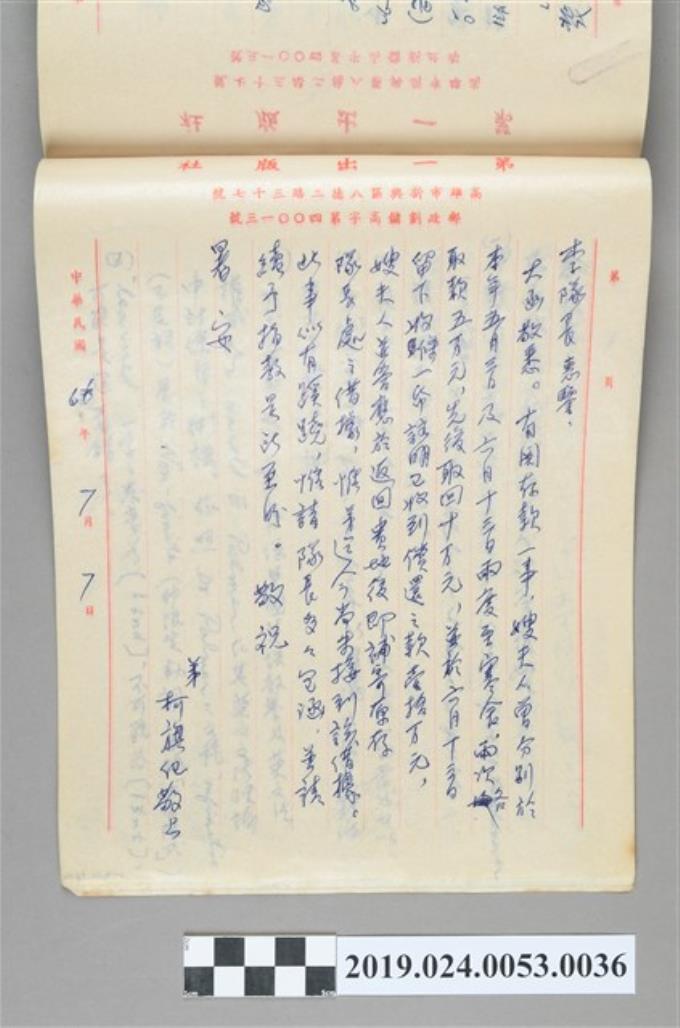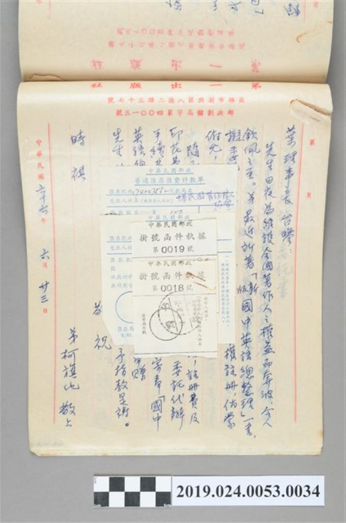 1977年6月23日柯旗化寄給葉潛昭理事長之信件