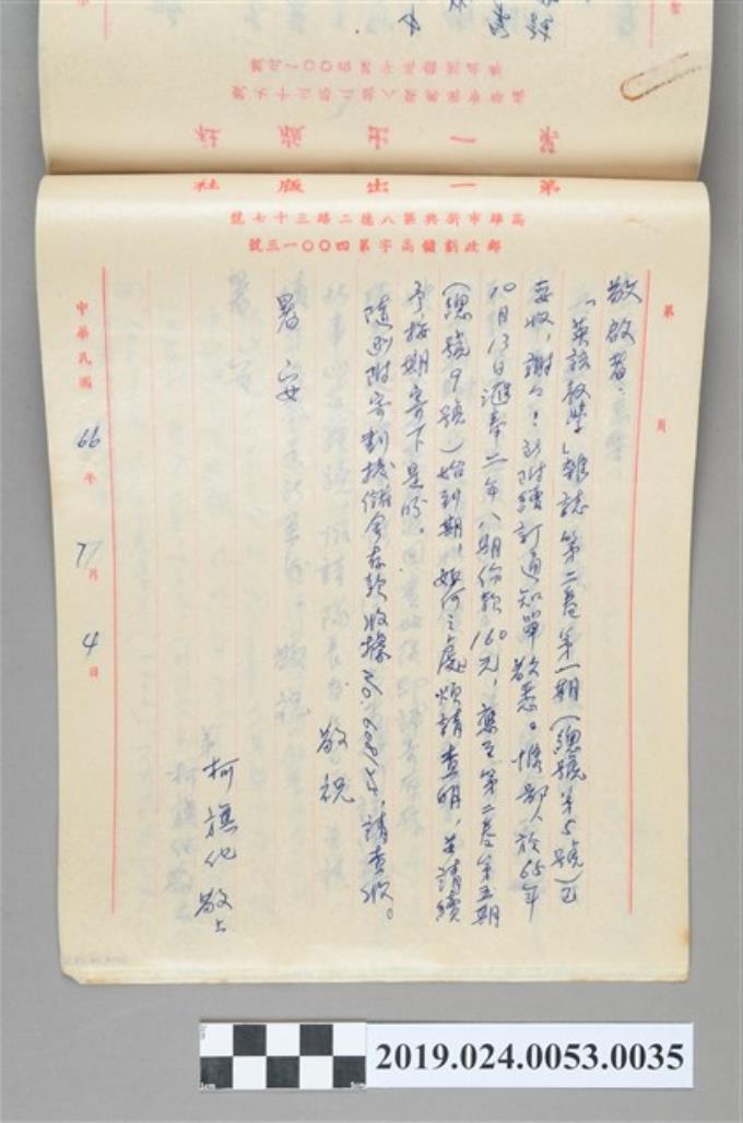 1977年7月4日柯旗化《英語教學》雜誌訂購之信件