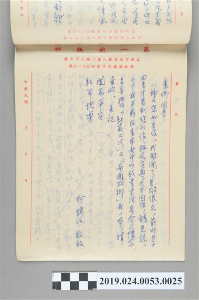 1977年1月1日柯旗化寄給山路勝之信件