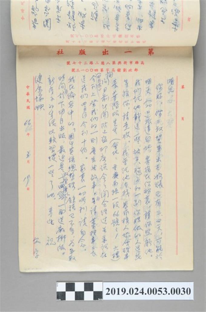 1977年3月19日柯旗化寄給長子柯志明之信件