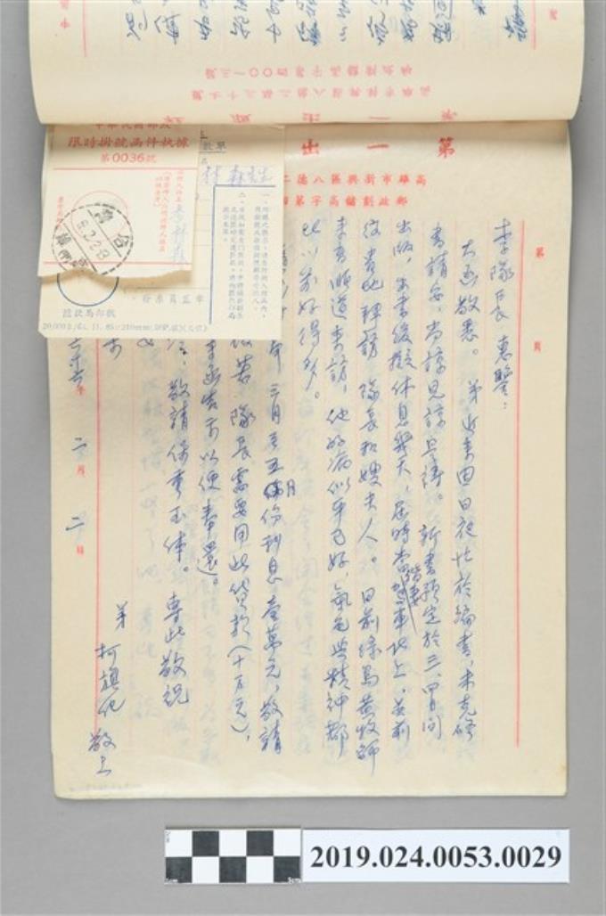 1977年2月2日柯旗化寄給李隊長之信件