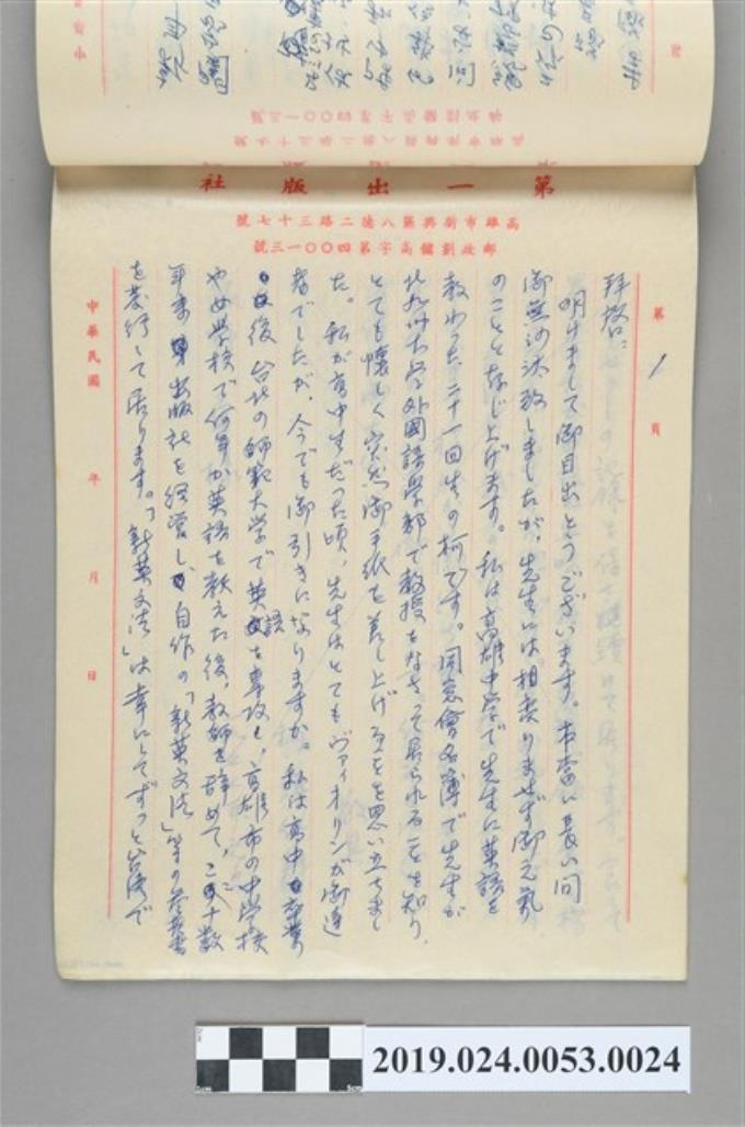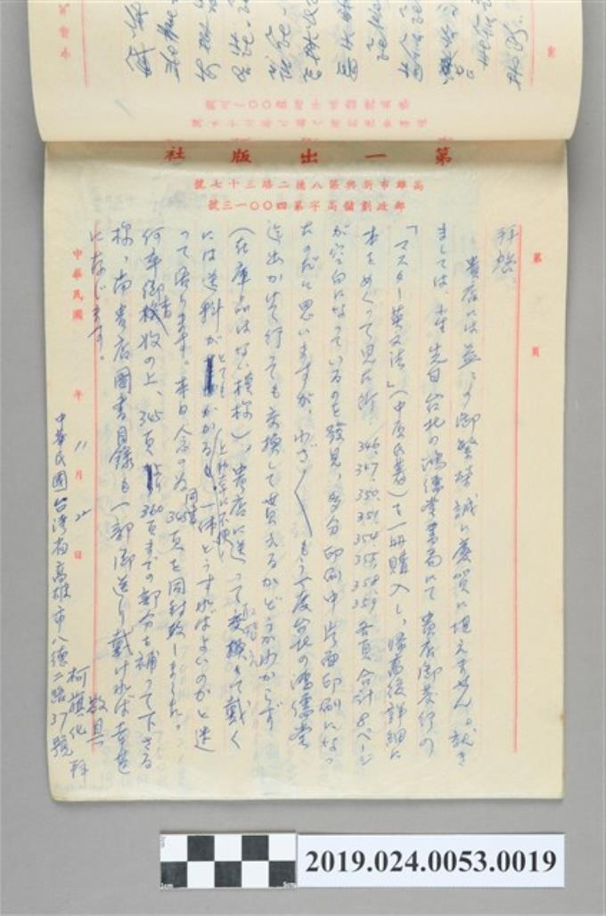 1976年11月29日柯旗化向日本旺文社購書之信件複寫
