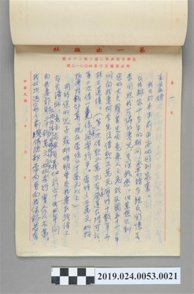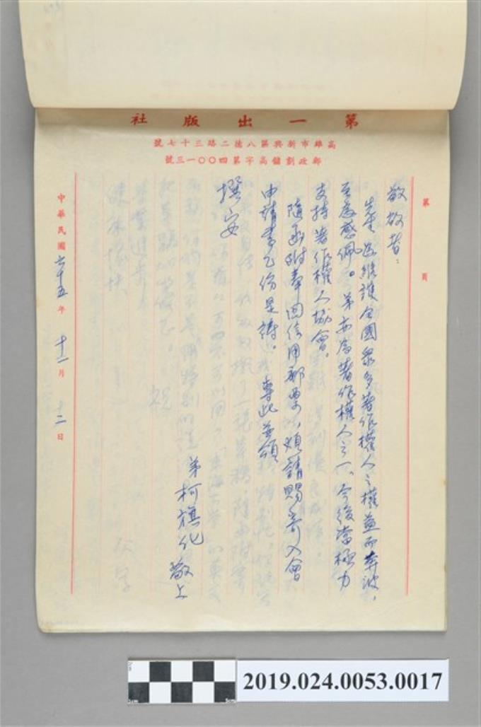 1976年11月2日柯旗化寄給著作人權協會之信件