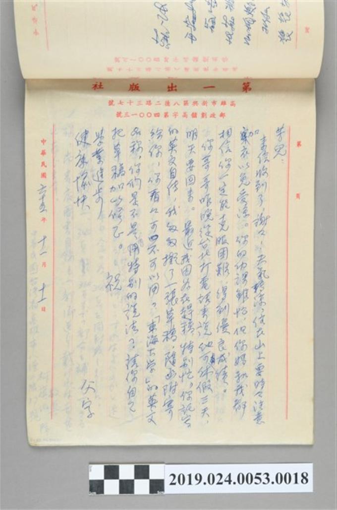 1976年11月11日柯旗化寄給女兒柯潔芳之信件