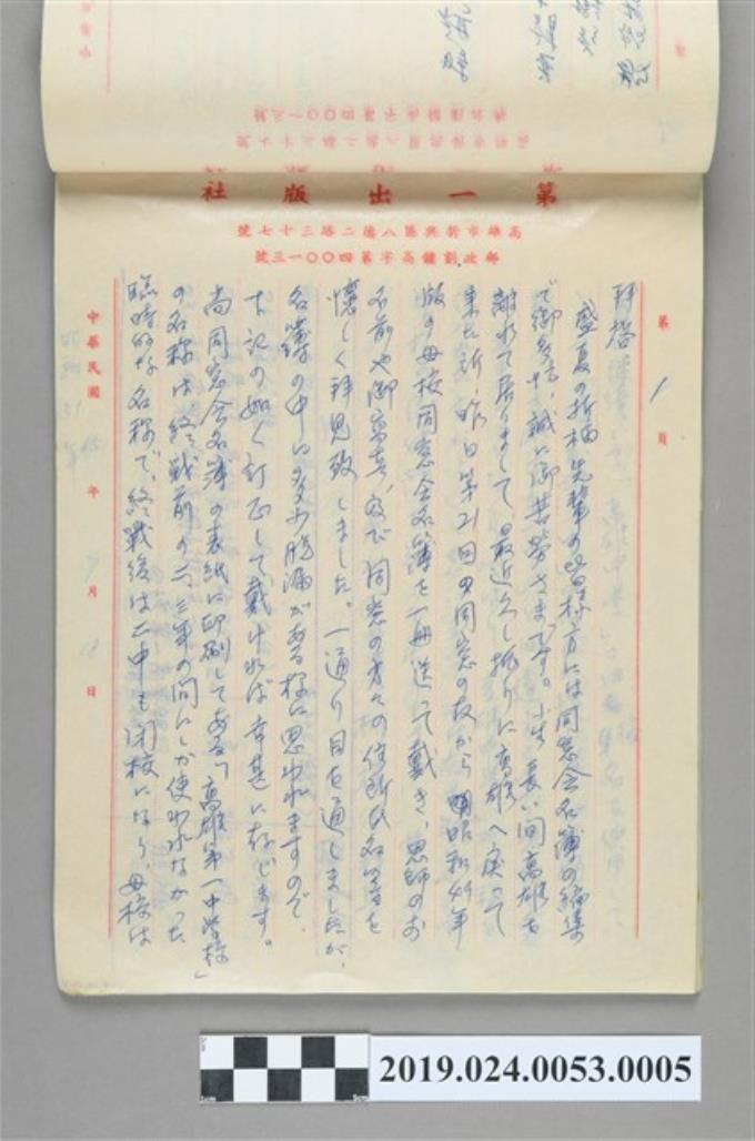 1976年7月18日柯旗化寄給高雄中學在日校友會之信件