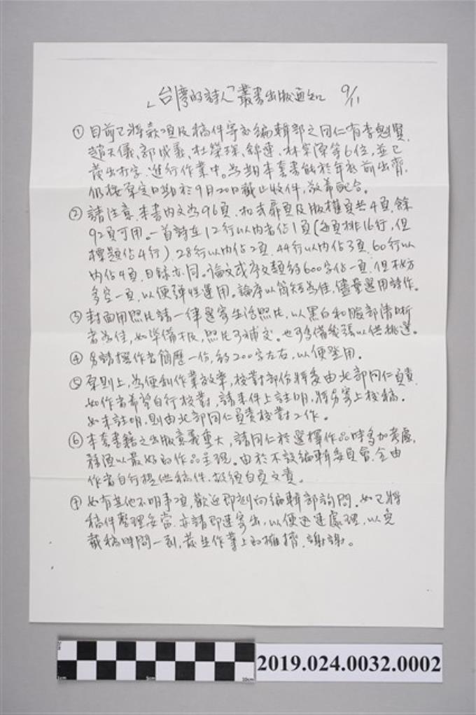 笠詩刊社寄柯旗化《台灣詩人選集》出版紀念會邀請信件(1986年3月9日)