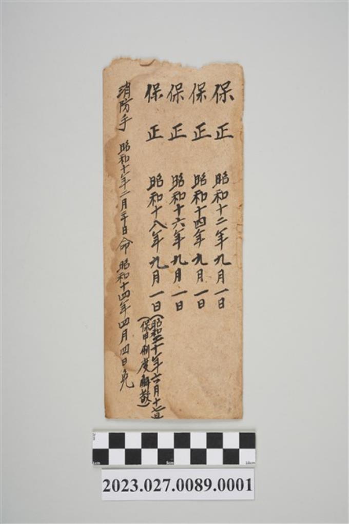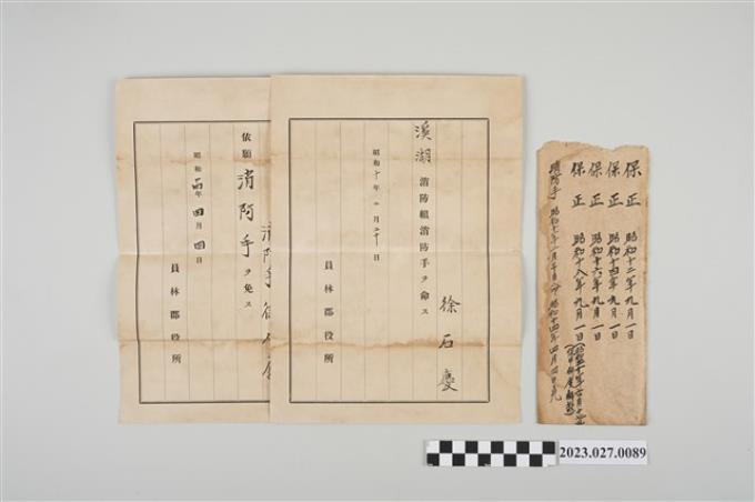 1935年2月20日保正及消防手信封及文件
