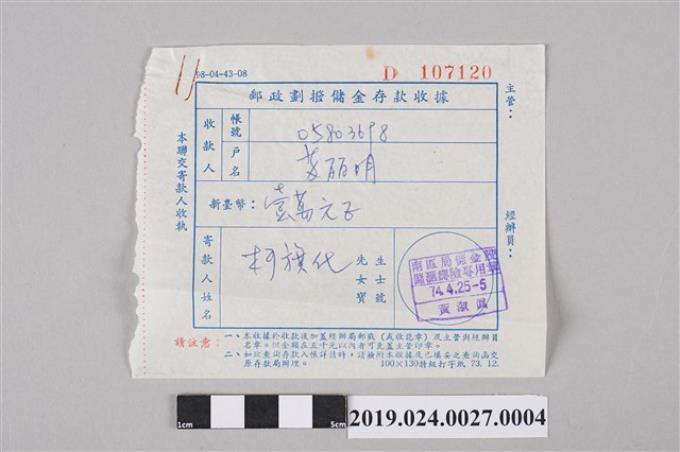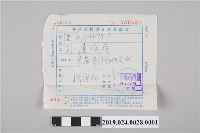 柯旗化繳交《台灣詩人全集》稿費劃撥收據