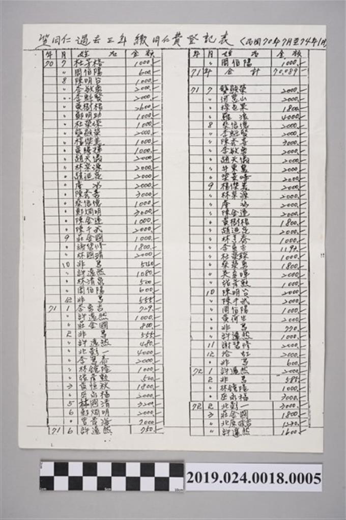 笠同仁過去三年繳同仁費登記表(1985年1月15日)