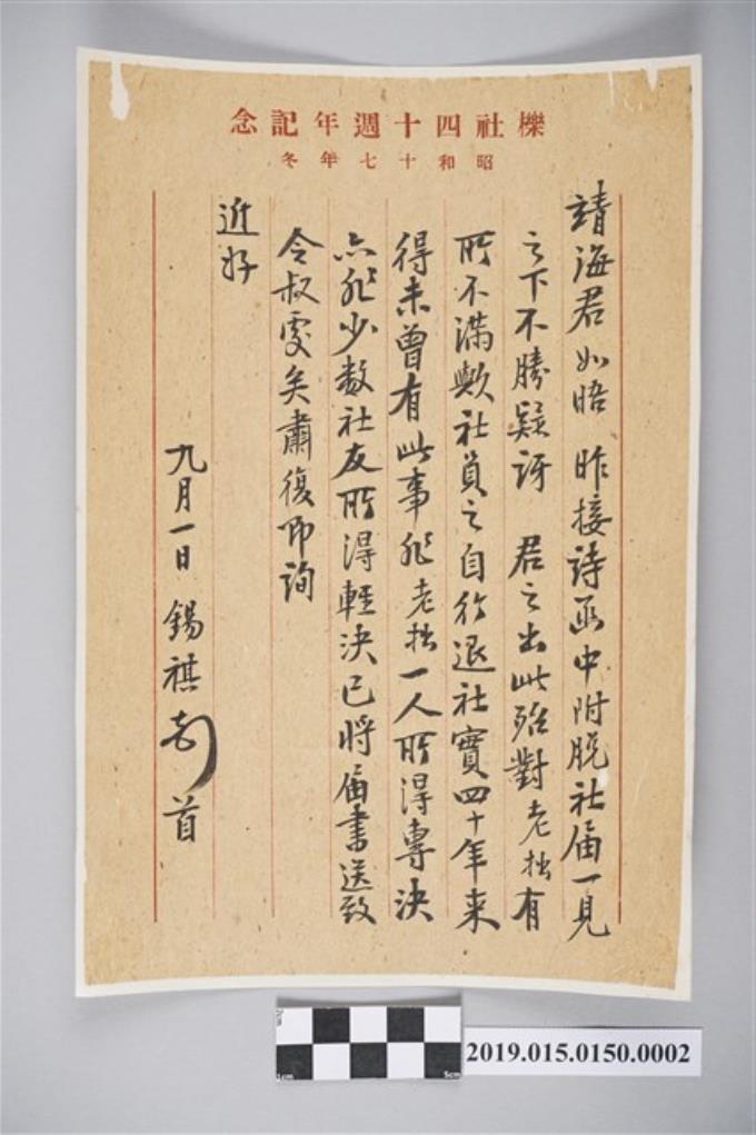 山田敬三寄柯旗化信件之內容(1984年5月11日)