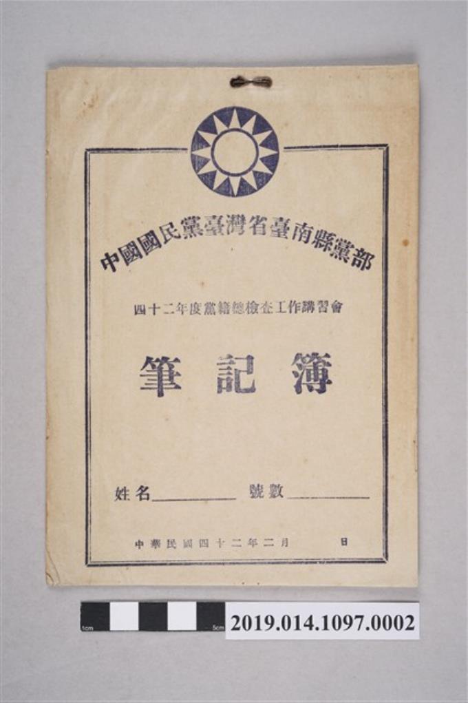 中國國民黨臺灣省臺南縣黨部四十二年度黨籍總檢查工作講習會筆記簿