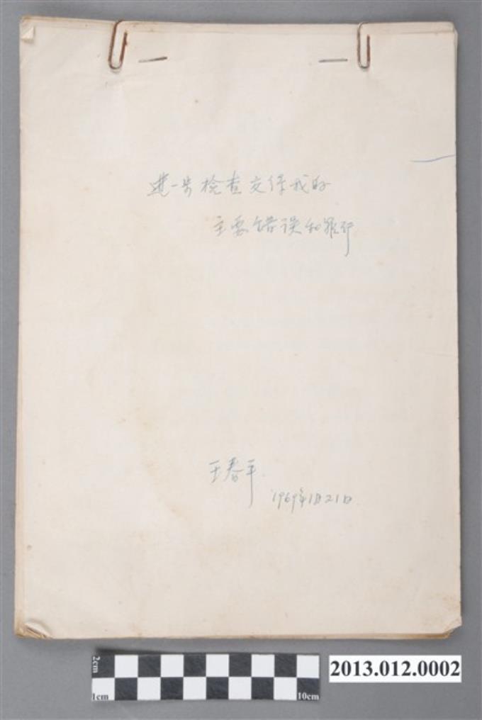 王春平撰〈進一步檢查交待我的主要錯誤和罪行
