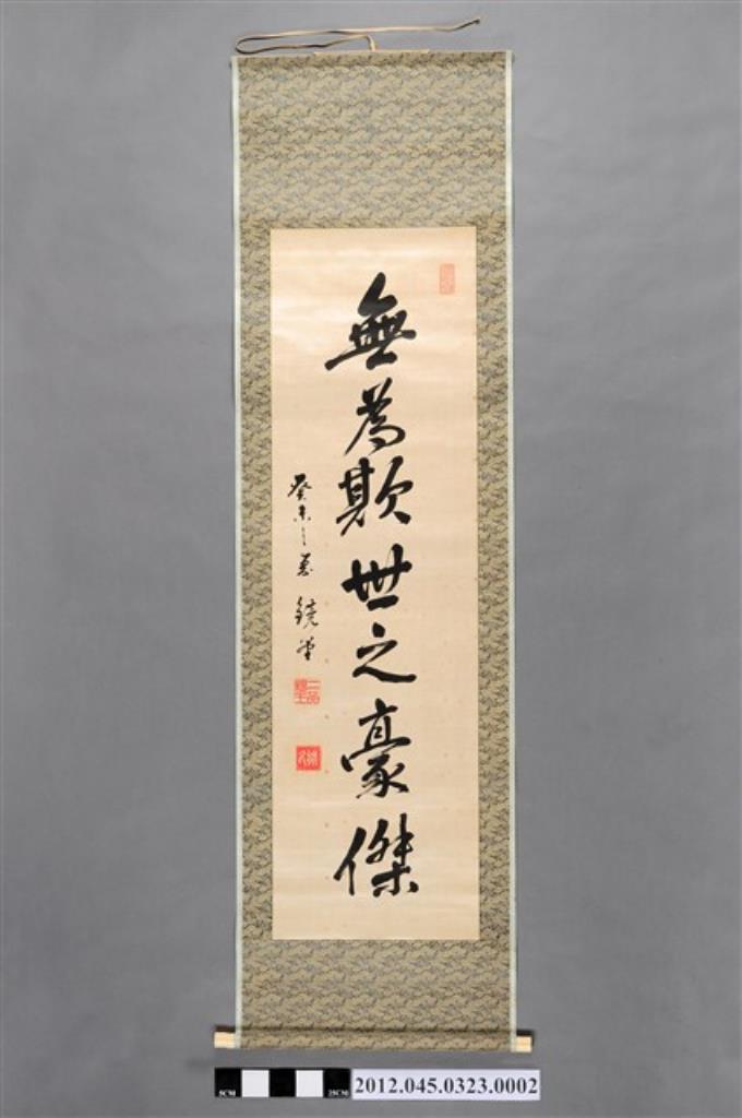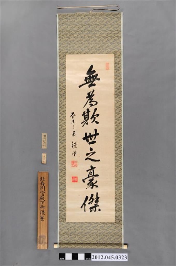北白川宮能久親王墨寶《無為欺世之豪傑》卷軸(附收納盒、裝軸記錄紙片、註記木片)