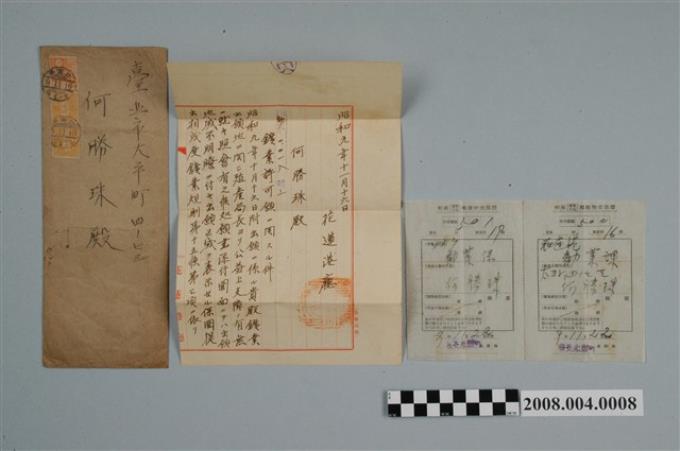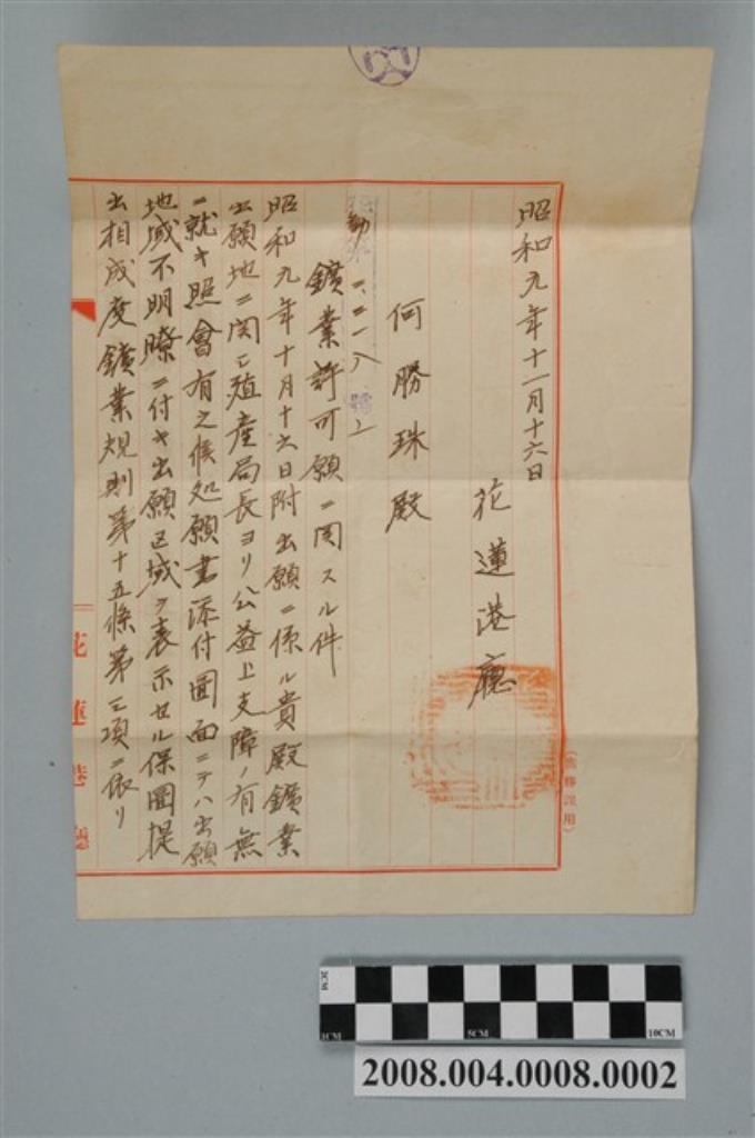 昭和9年花蓮港廳寄臺北市何勝珠信封