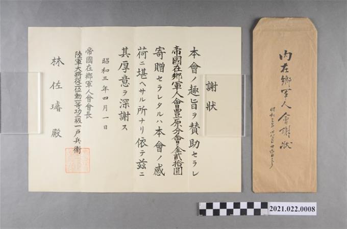 帝國在鄉軍人會豐原分會給林佐璿內在鄉軍人會謝狀信封