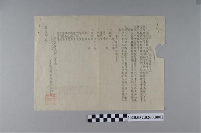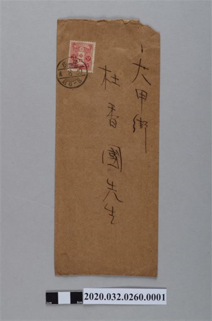 民眾黨本部寄杜香國通達本第36號關於支部財政收入支出之信封