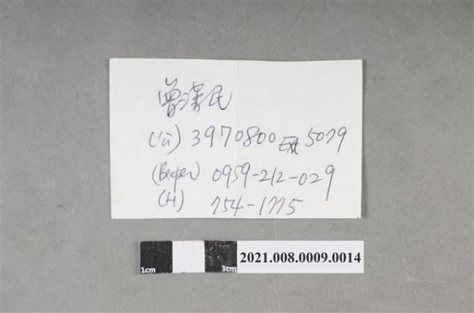 曾漢民醫生聯絡資料紙條