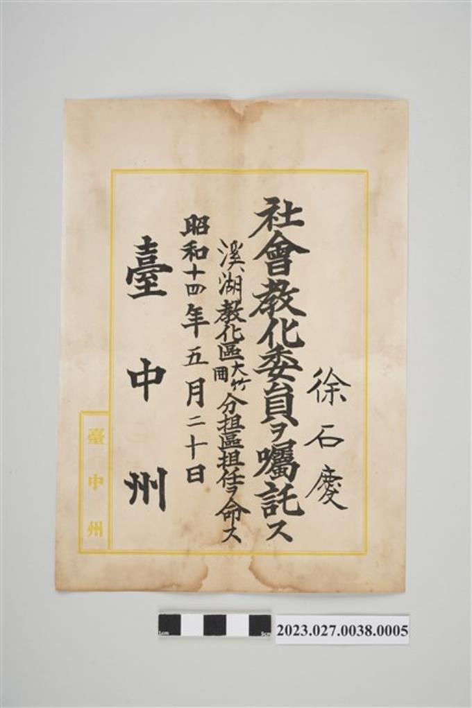 1933年2月1日臺中州教化委員證書4