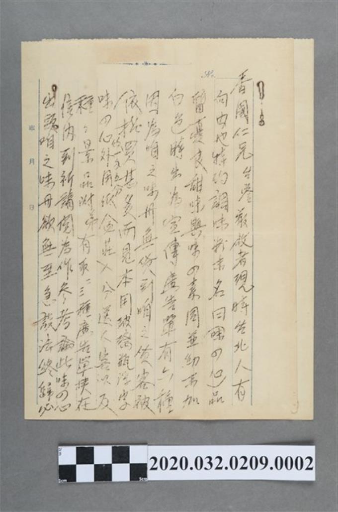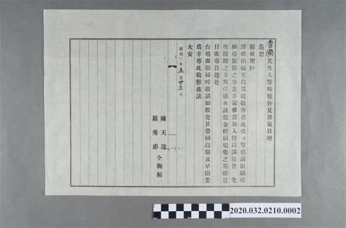 羅秀惠、陳天送邀杜香國入股亞細亞旅館信件