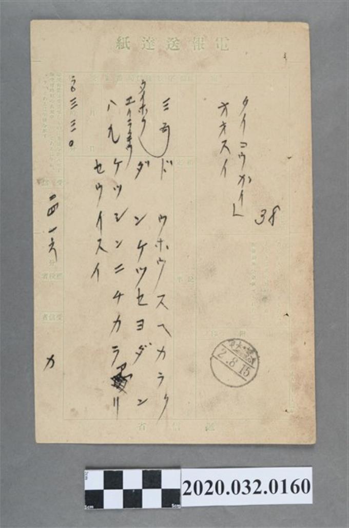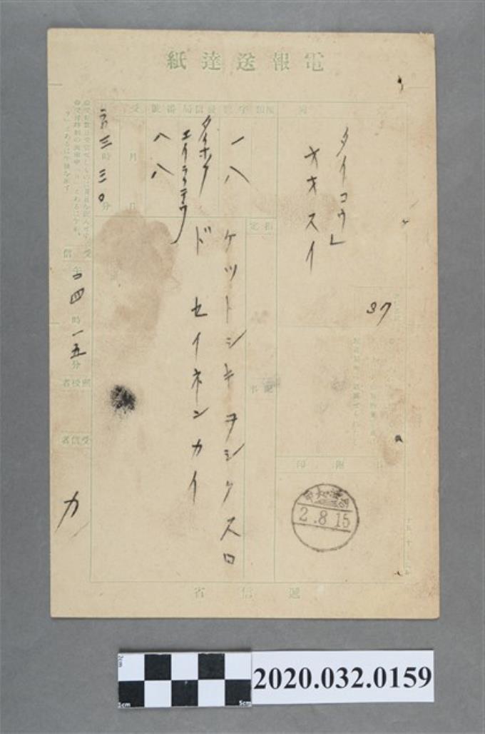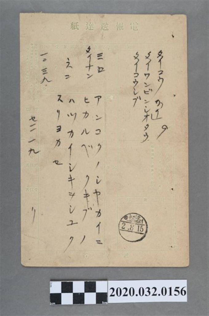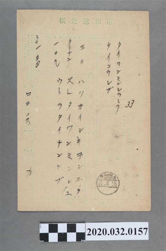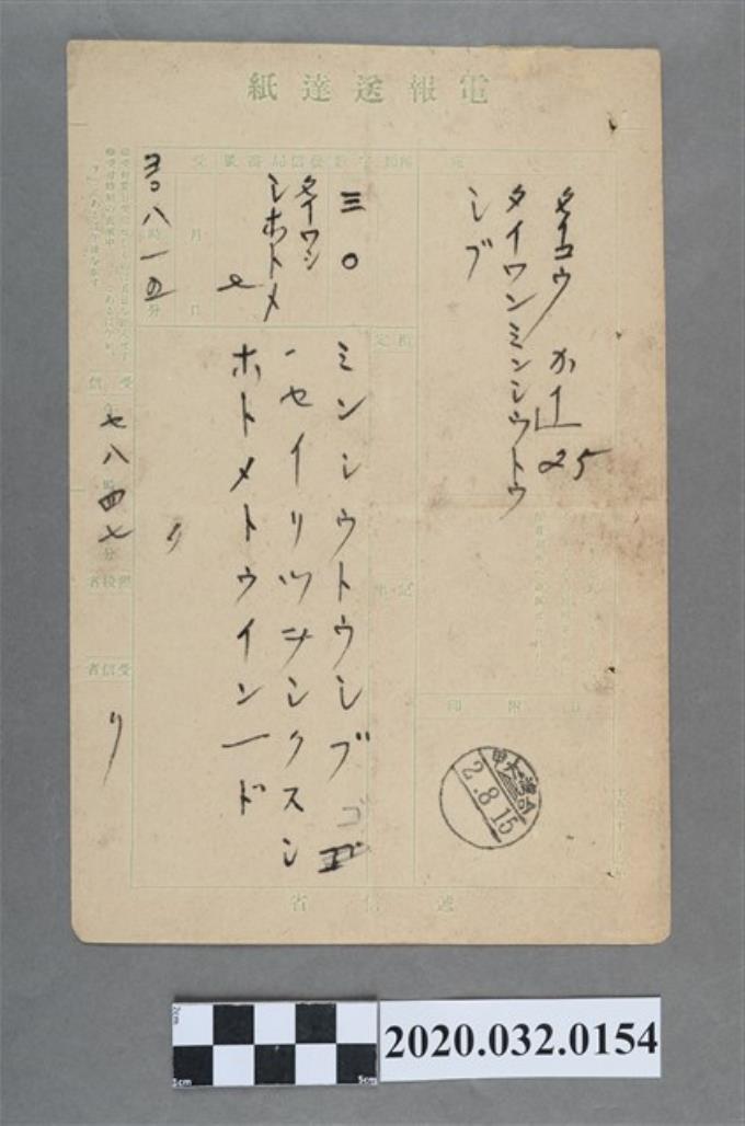 汐止支部黨員一同賀大甲支部成立電報送達紙