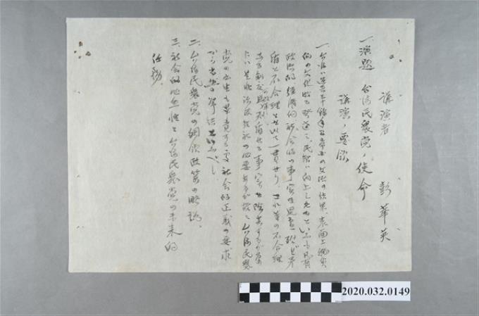 彭華英民眾黨大甲支部創立大會演講稿要領墨寶