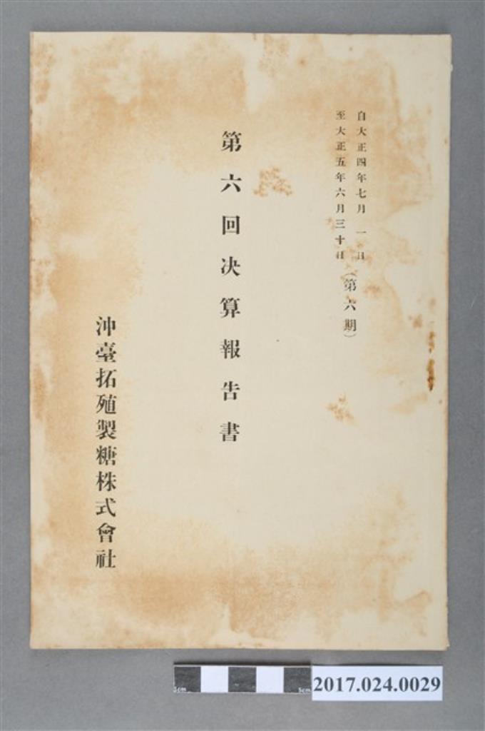 沖臺拓殖製糖株式會社《第6回決算報告書》及沖臺拓殖製糖會社及製腦地域圖