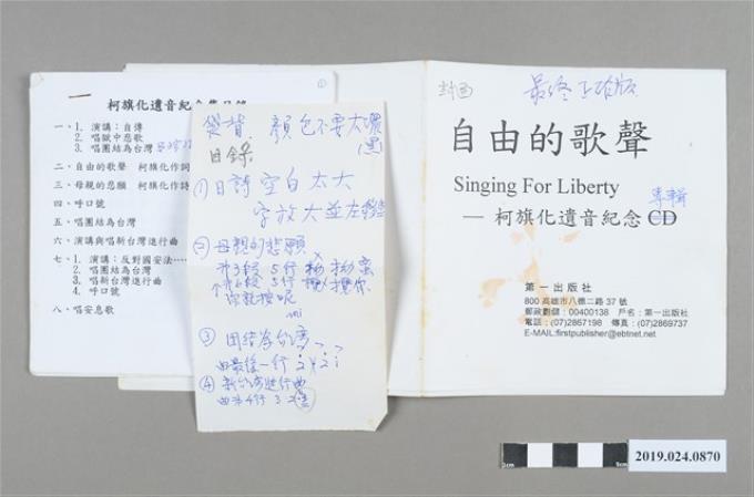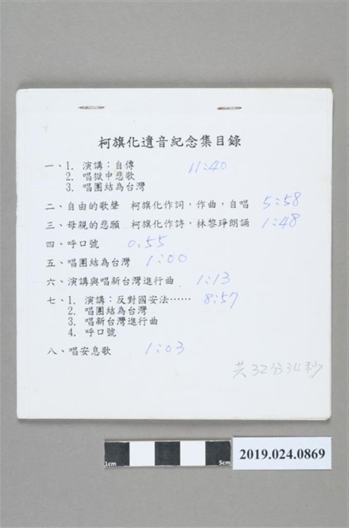 柯旗化遺音紀念集CD內頁設計稿之內容