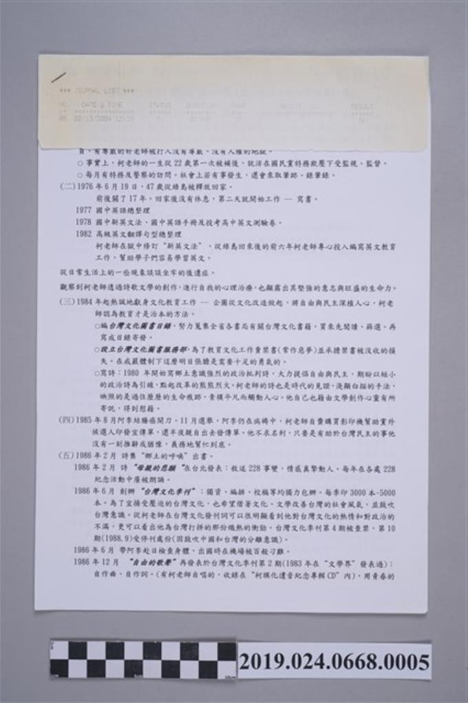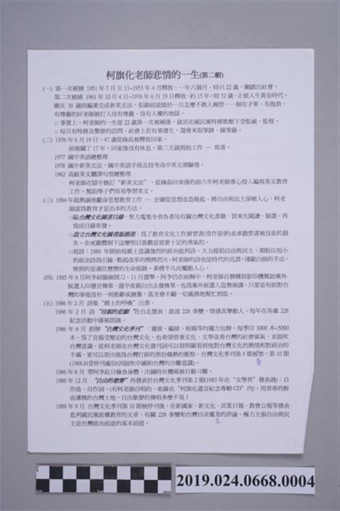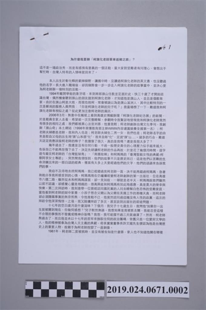 2012年2月26日紀念柯旗化單車賽與坐監活動之活動緣由稿