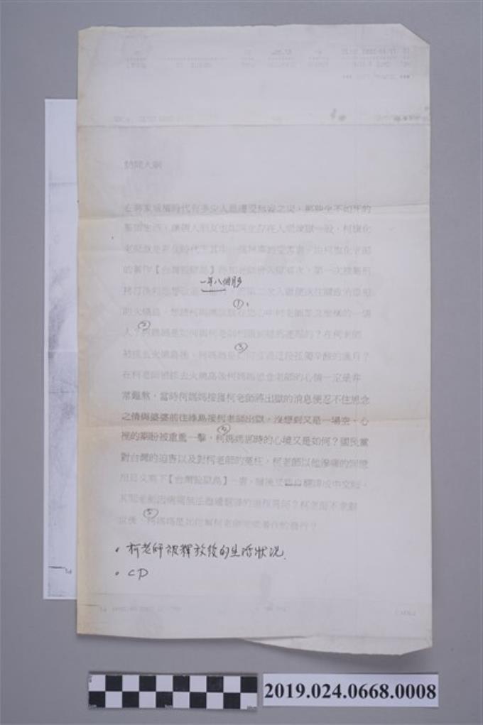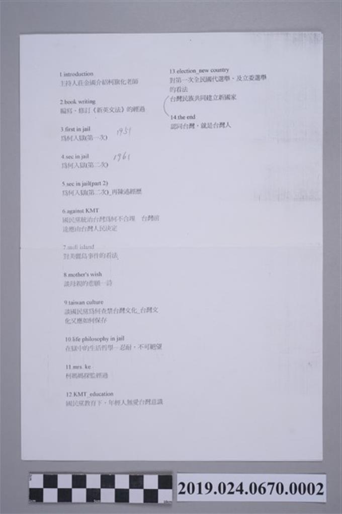 「一個政治犯的心聲」節目專訪柯蔡阿李大綱之內容