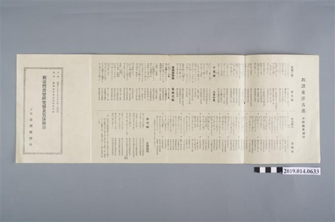 臺灣總督府編印《新臺灣音樂研究發表實演曲目》
