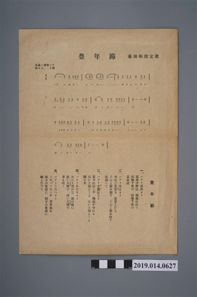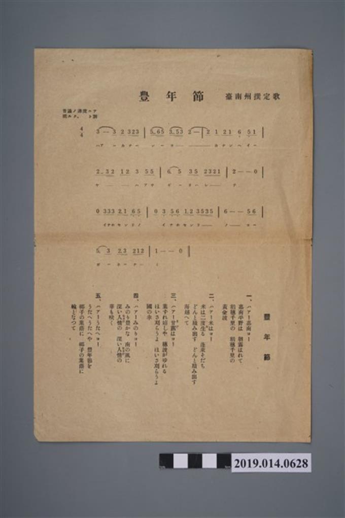 柯瑞吉捐贈歌譜〈豐年節〉