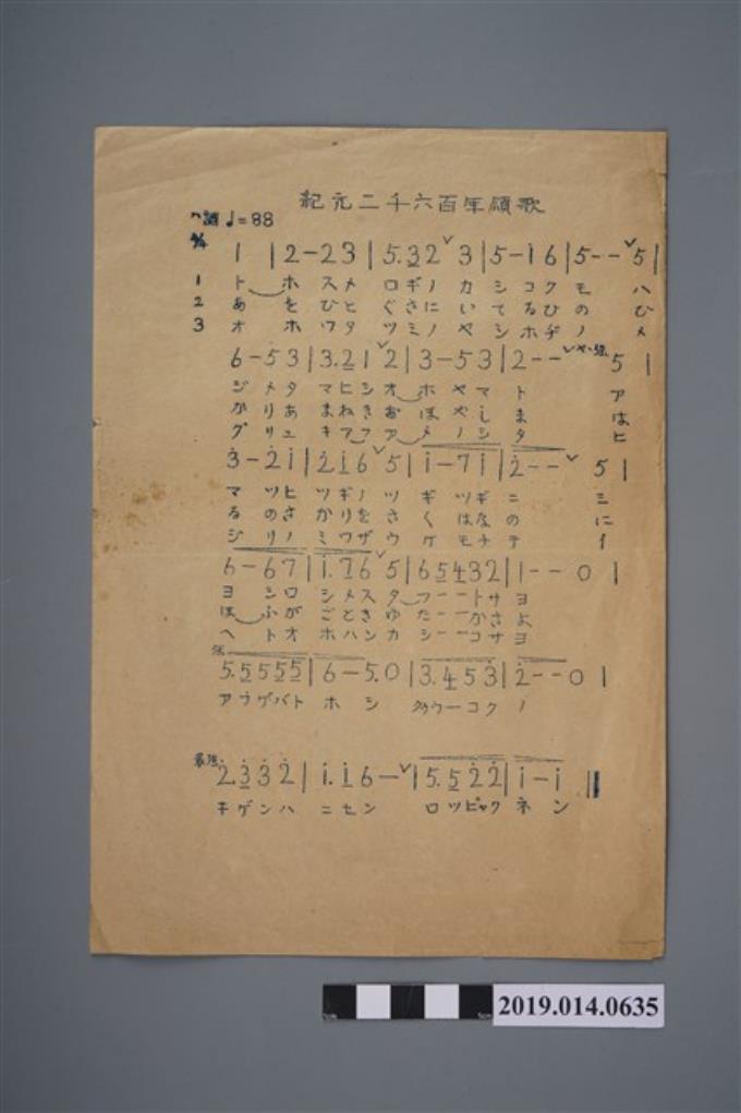 柯瑞吉捐贈歌譜〈紀元二千六百年頌歌〉