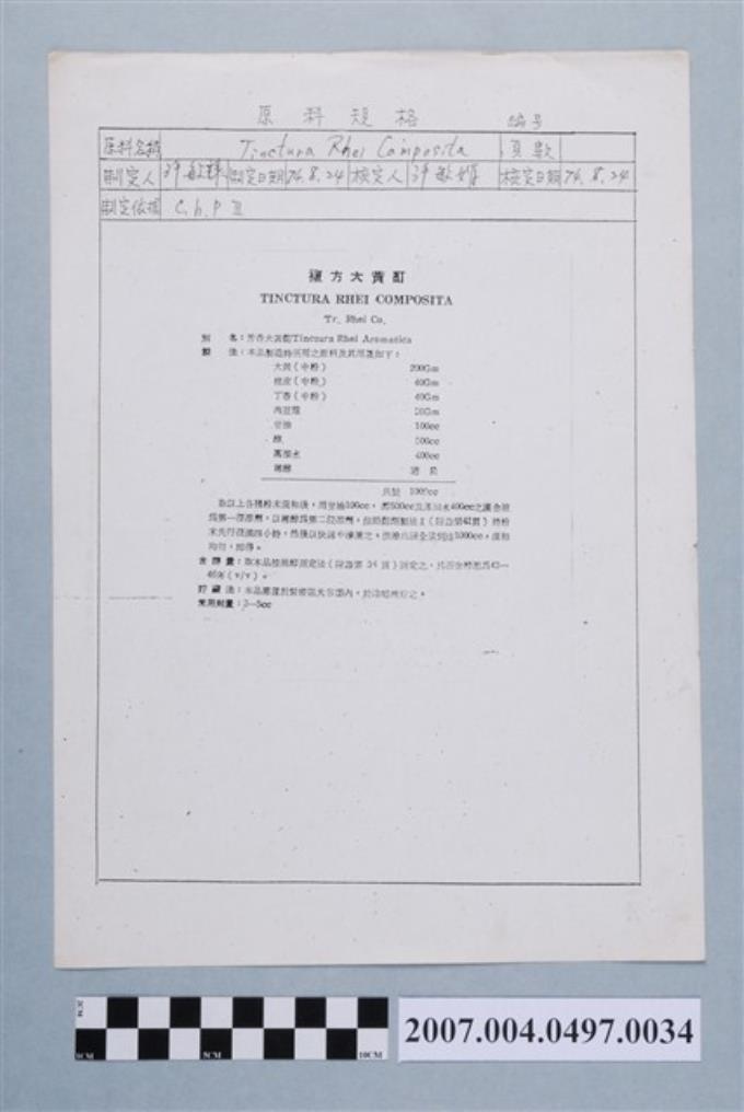 複方大黃酊原料規格