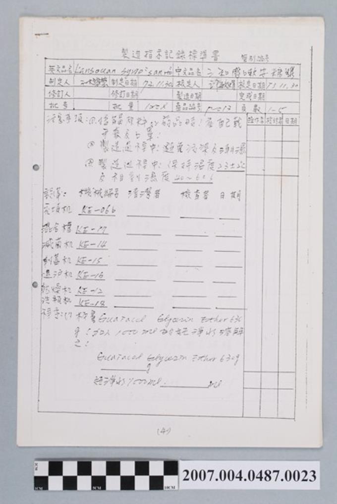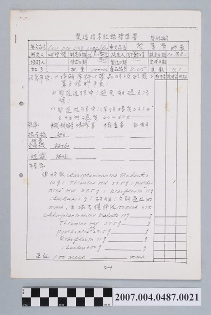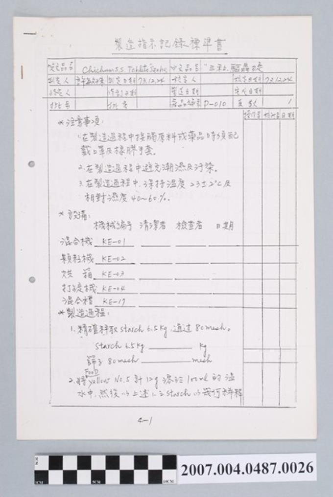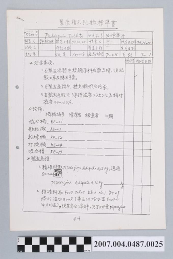 三和驅蟲錠製造指示記錄標準書